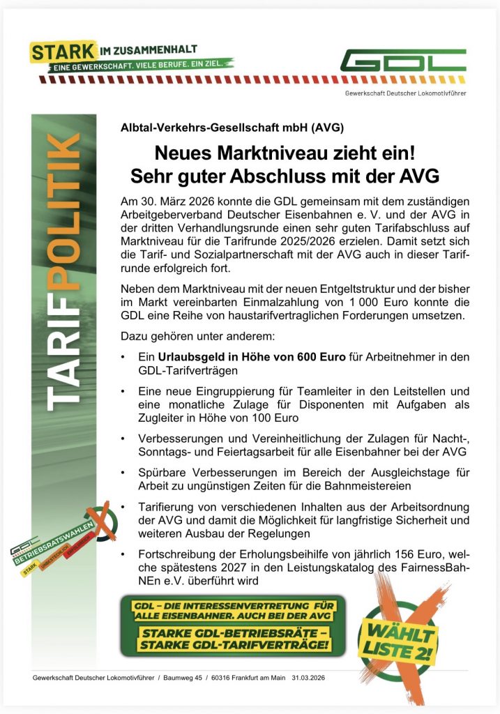 Am 30. März 2026 konnte die GDL gemeinsam mit dem zuständigen