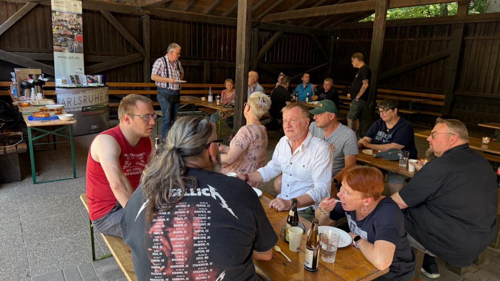 Bei bestem Wetter haben wir in diesem Jahr wieder einmal die Gastfreundschaft der Stadt Kandel in Anspruch genommen und erneut dort unser alljährliches Grillfest veranstaltet. Diesmal auch, auf vielfachen Wunsch schon beginnend mit Kaffee und selbst gebackenem Kuchen. In der schön schattige Location war das Feiern trotz des sommerlichen Wetters, für alle genau so wie es sein sollte. Erfrischende Getränke, bestes grill Gut, und unser Lachs Koch, Moritz von Sieg hat uns ebenfalls besucht, und seinen wunderbaren Räucherlachs am offenen Feuer zubereitet. Danke Moritz!
